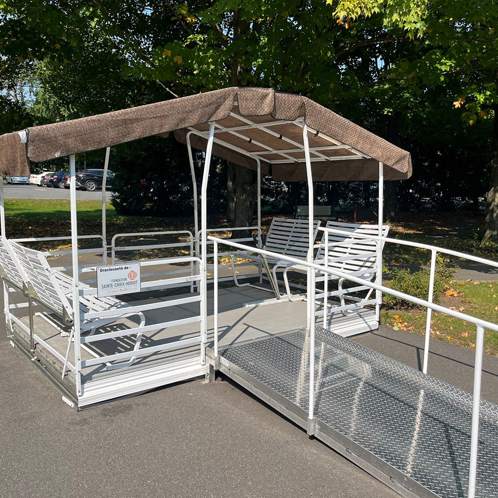 Offrant une sécurité pour les personnes à mobilité réduite. Elle facilite aussi le transfert d’une chaise roulante à la chaise berçante et vice-versa.